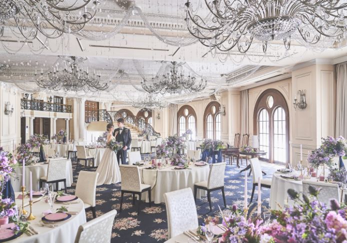 白大理石が彩るパーティ会場「エノク」をはじめ、趣の異なるパーティ会場が揃う同館。どの会場をセレクトしても、花嫁憧れの大階段入場が叶うことが嬉しい。ふたりのテーマに合った会場で非日常のパーティが叶う